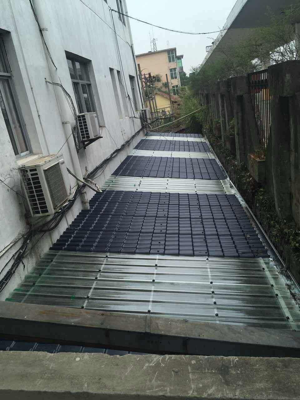 首先,樹脂瓦,釆用化學(xué)原料機械高溫壓制而成,主要原料是丙烯腈、苯乙烯、丙烯酸橡膠三種物質(zhì)。重量輕,不到傳統(tǒng)瓦十分一,耐腐蝕,防水,防壓,防凍,防潮,雨停水不留,防冰雹,防地震,隔熱保溫,耐用,不褪色,保持屋面漂亮美觀,如果你使同正規(guī)廠家生產(chǎn)的樹脂瓦,它使用壽命可長達30年以上,永遠高于傳統(tǒng)的小青瓦,黃瓦了。現(xiàn)在我們常見的雨棚、遮陽棚等大多是用樹脂瓦蓋的。同時,樹脂瓦顏色鮮艷,這一點確實是顯而易見的。紅的、藍的、灰的等等,只要是你想要的房頂?shù)念伾际悄軌蚪o你制造出來的。而且,干凈,用樹脂做的房頂自然是下雨天雨水沖洗的會比較干凈,所以樹脂瓦看上去比較潔凈。