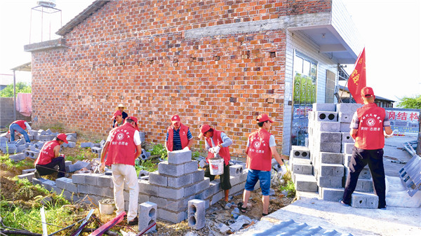 志愿者建房現(xiàn)場(chǎng)。本報(bào)記者 范婷 攝
