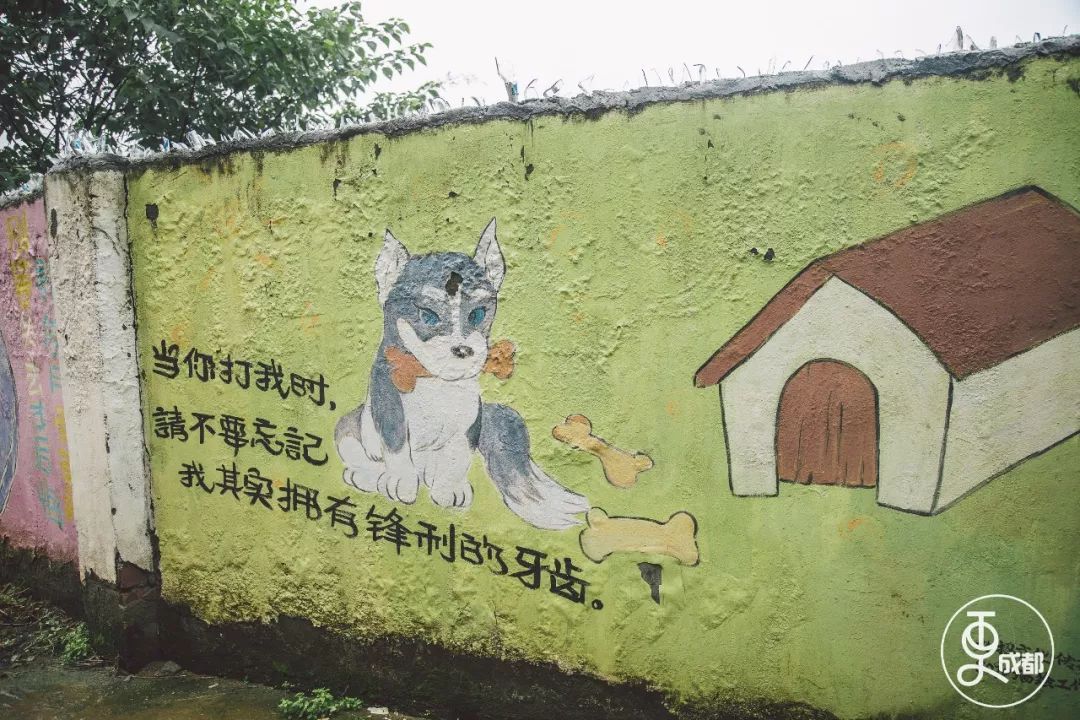 而在眾多的玩笑中,我看到了幾條不那么好笑的照片——成都一家動物救助中心的圍墻被大雨沖垮了,工人們正在緊急搶修之中。