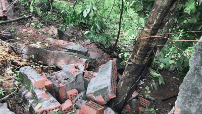 無奈7月暴雨,房子修到一半,后山的墻又被沖塌了。之前修的房子停了工,有些地方還要重頭來過。