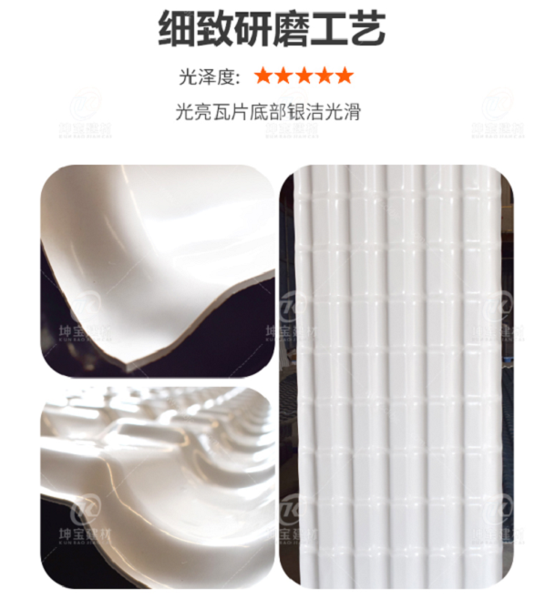 坤寶樹脂瓦推薦大家使用面層asa膜+PVC原料+鈣粉原料+pvc原料,厚度3.0mm,四層白底合成樹脂瓦,寬880mm,使用壽命在25年以上,顏色持久,價格也是具有性價比的,歡迎大家咨詢。
